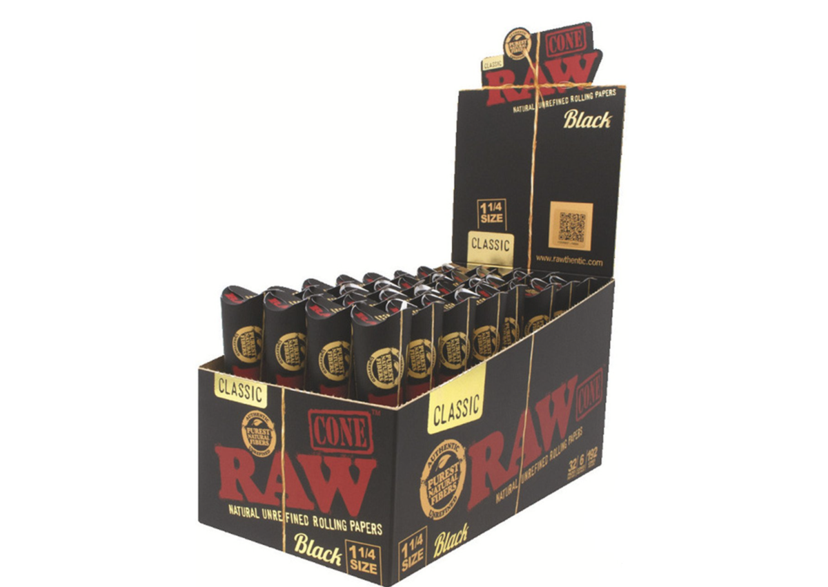 Raw Classic Black Cones 1.25 6pk 3.99 - 32ct Display